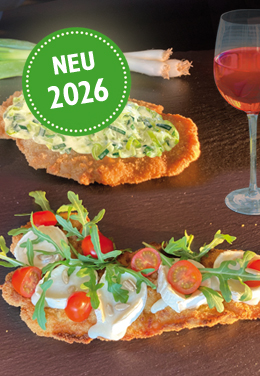 von Schwein, Pute, Kalb oder Veggie. Du kannst jede Beilage tauschen, so wie Du es magst. Alle Schnitzel haben immer eine frisch marinierte Salatgarnitur dabei.