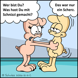 Comic Kurzgeschichten mit Schnizzi und Sausi Schnizzi begeistert die Kinderherzen in den Bastel- und Rätselheften der SCHNIZZ-Restaurants, seit seiner Geburt 2007 in Sachsen. Schnizzi faulenzt und mampft gern, außerdem spielt er gerne Streiche und hat immer den richtigen Spruch auf Lager. Seit Januar 2026 hat er sogar eine Freundin namens "Sausi" an seiner Seite. Viel Freude beim Lesen wünscht die gesamte SCHNIZZ-Redaktion. |
