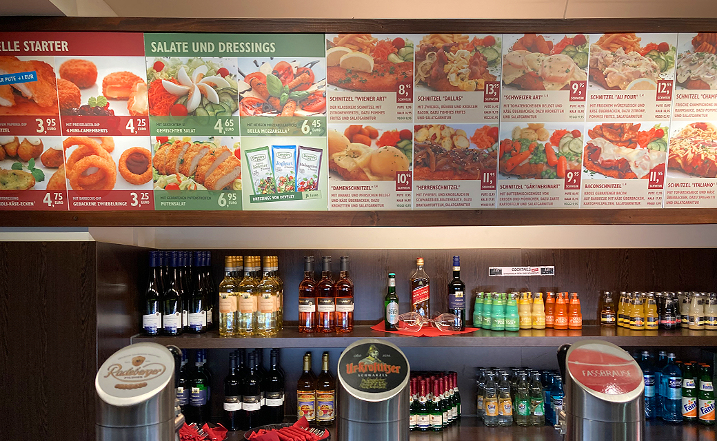 Der Gast bezahlt sofort und nimmt selbständig sein Getränk und Besteck mit an den Platz. Innerhalb von 10-20 Minuten werden die Speisen frisch zubereitet und anschließend serviert.